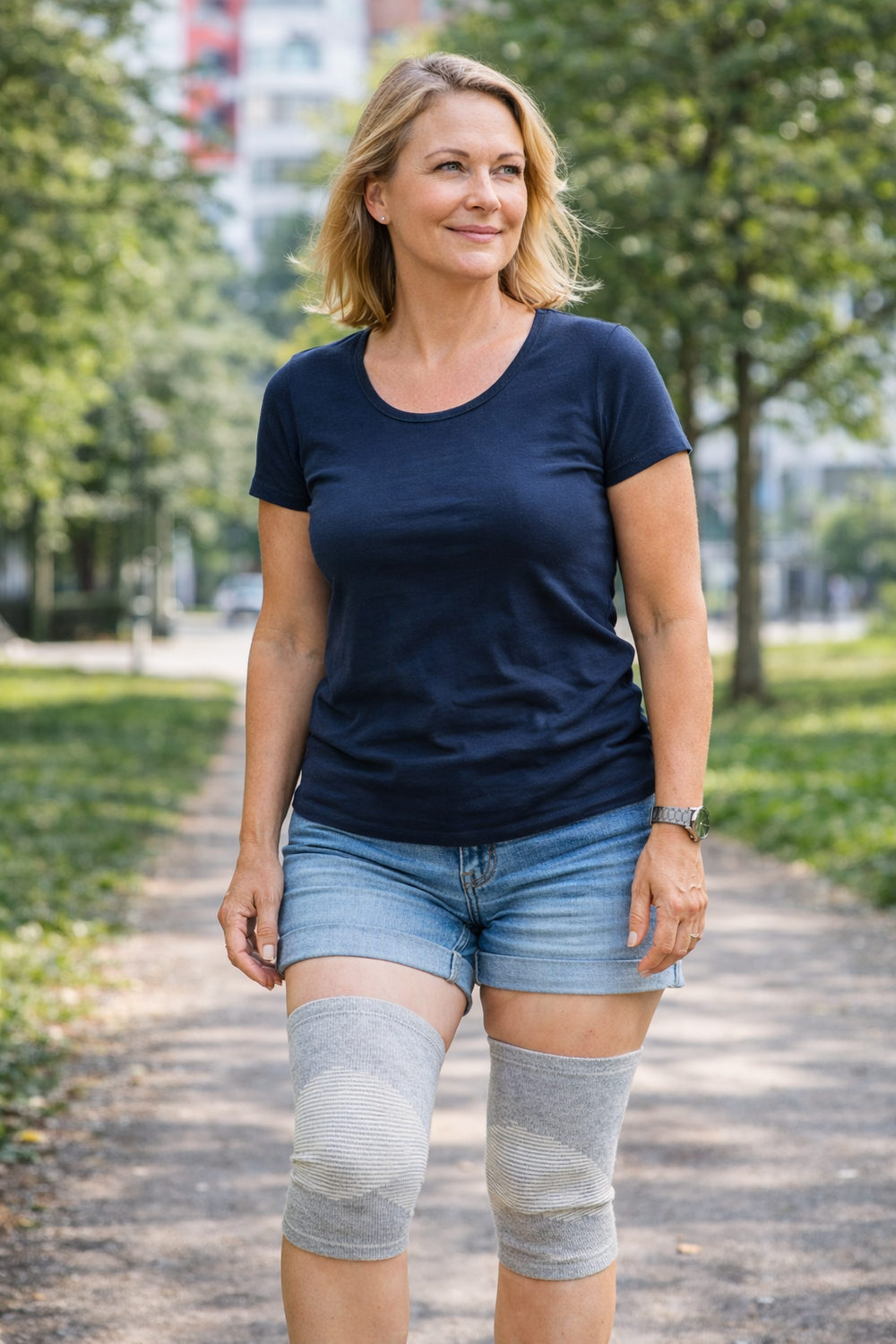 Oplev hvordan åndbar bambusfiber-kompression kan stabilisere dine knæ og mærkbart reducere smerter.